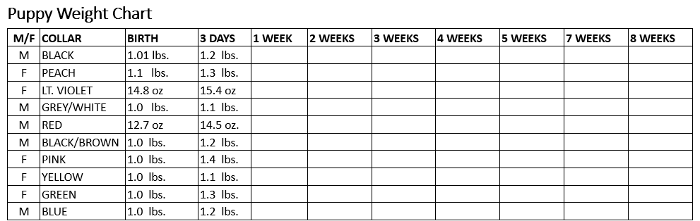 1 week old; Super dog program will be started.
